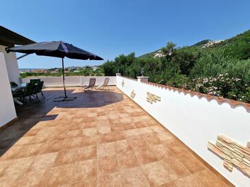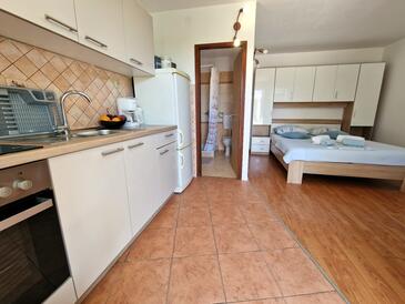Ferienwohnung bietet Platz für 5 Gäste. Die Betten sind in Schlafzimmern, die es 2 gibt, innerhalb einer Gesamtfläche von 60m2, angeordnet. Die Gäste haben eine eigene Terrasse zur Verfügung, auf der sie in warmen Sommernächten genießen können. Das Apartment bietet Meerblick. Es ist erlaubt, Speisen auf dem Gemeinschafts-Grill vorzubereiten. In der Unterkunftseinheit besteht die Möglichkeit des Mitbringens von Haustieren gegen Aufpreis.