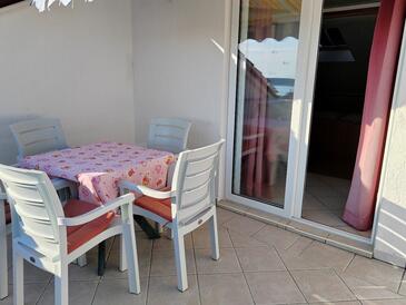Ferienwohnung bietet Platz für 5 Gäste. Die Betten sind in Schlafzimmern, die es 2 gibt, und in Wohnzimmer, innerhalb einer Gesamtfläche von 70m2, angeordnet. Die Gäste haben eine eigene Terrasse zur Verfügung, auf der sie in warmen Sommernächten genießen können. Es ist erlaubt, Speisen auf dem Gemeinschafts-Grill vorzubereiten. In der Unterkunftseinheit besteht die Möglichkeit des Mitbringens von Haustieren gegen Aufpreis.