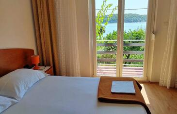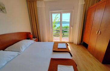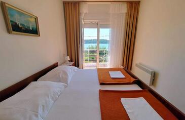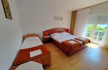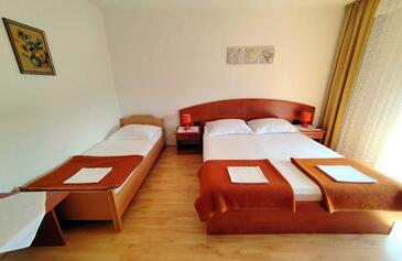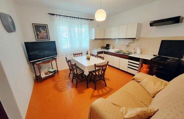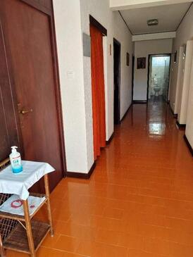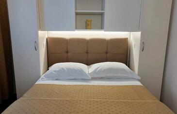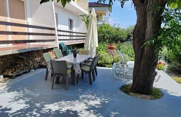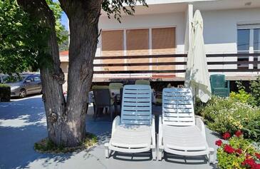 Ferienwohnung bietet Platz für 7 Gäste. Die Betten sind in Schlafzimmern, die es 3 gibt, innerhalb einer Gesamtfläche von 100m2, angeordnet. Die Gäste haben eine eigene Terrasse zur Verfügung, auf der sie in warmen Sommernächten genießen können. Das Apartment bietet Meerblick. Es ist erlaubt, Speisen auf dem Gemeinschafts-Grill vorzubereiten.