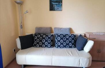 Ferienwohnung bietet Platz für 4 Gäste. Die Betten sind in Schlafzimmern, die es 2 gibt, innerhalb einer Gesamtfläche von 60m2, angeordnet. Die Gäste haben eine eigene Terrasse zur Verfügung, auf der sie in warmen Sommernächten genießen können. Das Apartment bietet Meerblick. Es ist erlaubt, Speisen auf dem Gemeinschafts-Grill vorzubereiten. In der Unterkunftseinheit besteht die Möglichkeit des Mitbringens von Haustieren gegen Aufpreis.