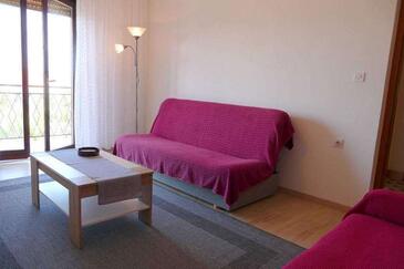 Ferienwohnung bietet Platz für 5 Gäste. Die Betten sind in Schlafzimmern, die es 2 gibt, und in Wohnzimmer, innerhalb einer Gesamtfläche von 74m2, angeordnet. Die Gäste haben einen eigenen Balkon zur Verfügung, auf der sie in warmen Sommernächten genießen können. Das Apartment bietet Meerblick. Es ist erlaubt, Speisen auf dem Gemeinschafts-Grill vorzubereiten.