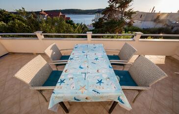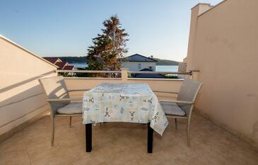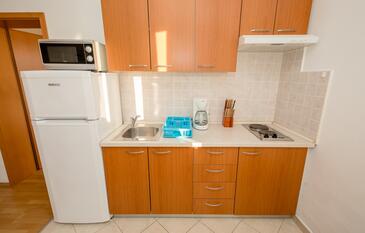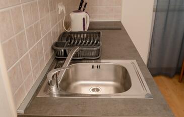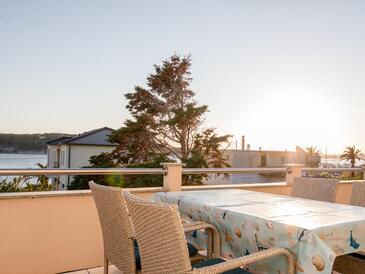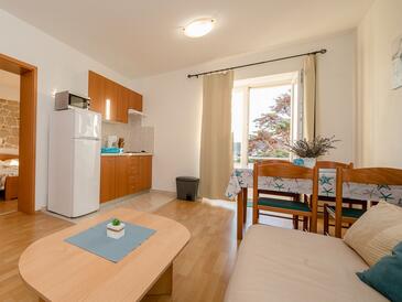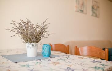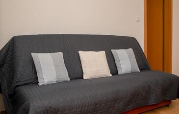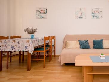 Ferienwohnung bietet Platz für 5 Gäste. Die Betten sind in Schlafzimmern, die es 2 gibt, und in Wohnzimmer, innerhalb einer Gesamtfläche von 51m2, angeordnet. Die Gäste haben eine eigene Terrasse zur Verfügung, auf der sie in warmen Sommernächten genießen können. Das Apartment bietet Meerblick. Es ist erlaubt, Speisen auf dem Gemeinschafts-Grill vorzubereiten. In der Unterkunftseinheit besteht die Möglichkeit des Mitbringens von Haustieren gegen Aufpreis.