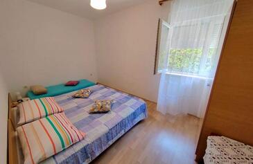 Ferienwohnung bietet Platz für 7 Gäste. Die Betten sind in Schlafzimmern, die es 3 gibt, innerhalb einer Gesamtfläche von 83m2, angeordnet. Die Gäste haben eine eigene Terrasse zur Verfügung, auf der sie in warmen Sommernächten genießen können. Es ist erlaubt, Speisen auf dem Gemeinschafts-Grill vorzubereiten.