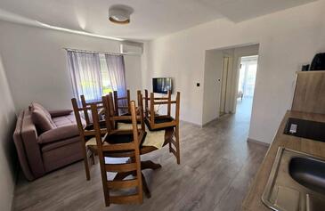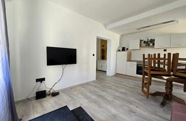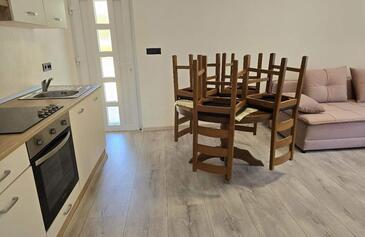 Ferienwohnung bietet Platz für 3 Gäste. Die Betten sind in Schlafzimmern, die es 1 gibt, und in Wohnzimmer, innerhalb einer Gesamtfläche von 44m2, angeordnet. Die Gäste haben eine eigene Terrasse zur Verfügung, auf der sie in warmen Sommernächten genießen können. Das Apartment bietet Meerblick. Es ist erlaubt, Speisen auf dem Gemeinschafts-Grill vorzubereiten.
