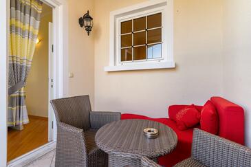 Ferienwohnung bietet Platz für 2 Gäste. Die Betten sind in Schlafzimmern, die es 1 gibt, innerhalb einer Gesamtfläche von 32m2, angeordnet. Die Gäste haben eine eigene Terrasse zur Verfügung, auf der sie in warmen Sommernächten genießen können. Das Apartment bietet Meerblick. Es ist erlaubt, Speisen auf dem Gemeinschafts-Grill vorzubereiten. In der Unterkunftseinheit besteht die Möglichkeit des Mitbringens von Haustieren gegen Aufpreis.