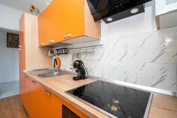 Ferienwohnung bietet Platz für 7 Gäste. Die Betten sind in Schlafzimmern, die es 2 gibt, und in Wohnzimmer, innerhalb einer Gesamtfläche von 53m2, angeordnet. Die Gäste haben eine eigene Terrasse zur Verfügung, auf der sie in warmen Sommernächten genießen können. Es ist erlaubt, Speisen auf dem Gemeinschafts-Grill vorzubereiten. In der Unterkunftseinheit besteht die Möglichkeit des Mitbringens von Haustieren gegen Aufpreis.