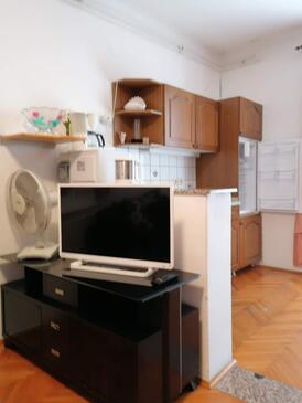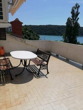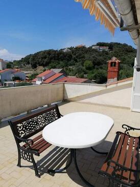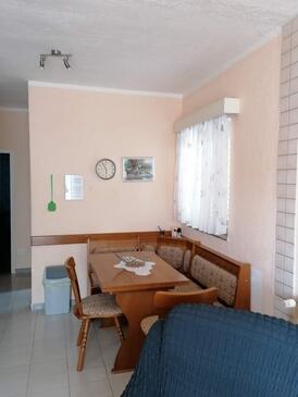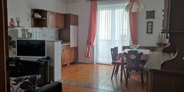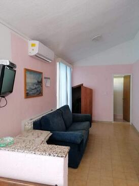 Ferienwohnung bietet Platz für 6 Gäste. Die Betten sind in Schlafzimmern, die es 2 gibt, innerhalb einer Gesamtfläche von 56m2, angeordnet. Die Gäste haben eine eigene Terrasse zur Verfügung, auf der sie in warmen Sommernächten genießen können. Das Apartment bietet Meerblick. In der Unterkunftseinheit besteht die Möglichkeit des Mitbringens von Haustieren gegen Aufpreis. In der gebuchten Unterkunftseinheit zahlt man am Ort ein Depositum ( der Preis ist an der Internetseite angeführt ).