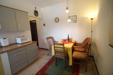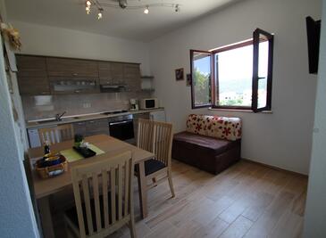 Ferienwohnung bietet Platz für 5 Gäste. Die Betten sind in Schlafzimmern, die es 2 gibt, und in Esszimmer, innerhalb einer Gesamtfläche von 49m2, angeordnet. Die Gäste haben eine eigene Terrasse zur Verfügung, auf der sie in warmen Sommernächten genießen können. Das Apartment bietet Meerblick. Es ist erlaubt, Speisen auf dem Gemeinschafts-Grill vorzubereiten. Während ihres Aufenthalts können Gäste das gemeinsam zur Nutzung stehende Schwimmbad benutzen. In der Unterkunftseinheit besteht die Möglichkeit des Mitbringens von Haustieren gegen Aufpreis.