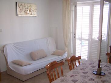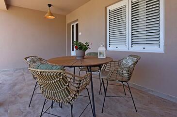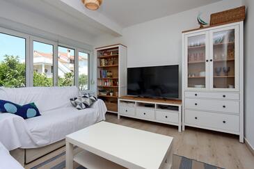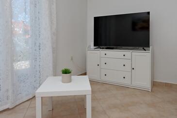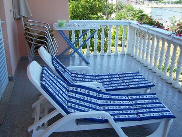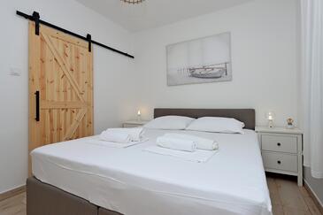Ferienwohnung bietet Platz für 4 Gäste. Die Betten sind in Schlafzimmern, die es 2 gibt, innerhalb einer Gesamtfläche von 63m2, angeordnet. Die Gäste haben eine eigene Terrasse zur Verfügung, auf der sie in warmen Sommernächten genießen können. Es ist erlaubt, Speisen auf dem Gemeinschafts-Grill vorzubereiten.