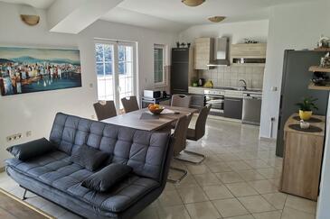 Ferienwohnung bietet Platz für 4 Gäste. Die Betten sind in Schlafzimmern, die es 2 gibt, innerhalb einer Gesamtfläche von 85m2, angeordnet. Die Gäste haben eine eigene Terrasse zur Verfügung, auf der sie in warmen Sommernächten genießen können. Das Apartment bietet Meerblick. Für vollen Genuss und Entspannung gibt es einen privaten Grill für Gäste dieser Unterkunft. In der gebuchten Unterkunftseinheit zahlt man am Ort ein Depositum ( der Preis ist an der Internetseite angeführt ).