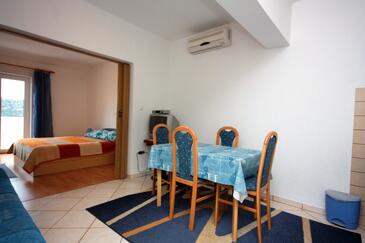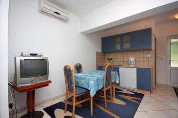 Ferienwohnung bietet Platz für 6 Gäste. Die Betten sind in Schlafzimmern, die es 2 gibt, und in Wohnzimmer, innerhalb einer Gesamtfläche von 64m2, angeordnet. Die Gäste haben eine eigene Terrasse zur Verfügung, auf der sie in warmen Sommernächten genießen können. Das Apartment bietet Meerblick. Es ist erlaubt, Speisen auf dem Gemeinschafts-Grill vorzubereiten. In der Unterkunftseinheit besteht die Möglichkeit des Mitbringens von Haustieren gegen Aufpreis.
