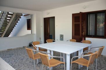 Ferienwohnung bietet Platz für 8 Gäste. Die Betten sind in Schlafzimmern, die es 4 gibt, innerhalb einer Gesamtfläche von 109m2, angeordnet. Die Gäste haben eine eigene Terrasse zur Verfügung, auf der sie in warmen Sommernächten genießen können. Das Apartment bietet Meerblick. Es ist erlaubt, Speisen auf dem Gemeinschafts-Grill vorzubereiten.
