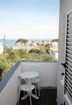 Ferienwohnung bietet Platz für 2 Gäste. Die Betten sind in Schlafzimmern, die es 1 gibt, innerhalb einer Gesamtfläche von 50m2, angeordnet. Die Gäste haben eine eigene Terrasse zur Verfügung, auf der sie in warmen Sommernächten genießen können. Das Apartment bietet Meerblick. Es ist erlaubt, Speisen auf dem Gemeinschafts-Grill vorzubereiten.