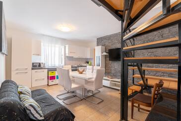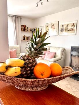 Ferienwohnung bietet Platz für 5 Gäste. Die Betten sind in Schlafzimmern, die es 2 gibt, innerhalb einer Gesamtfläche von 60m2, angeordnet. Die Gäste haben eine eigene Terrasse zur Verfügung, auf der sie in warmen Sommernächten genießen können. Für vollen Genuss und Entspannung gibt es einen privaten Grill für Gäste dieser Unterkunft. In der Unterkunftseinheit besteht die Möglichkeit des Mitbringens von Haustieren gegen Aufpreis.