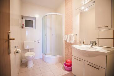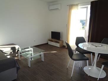 Ferienwohnung bietet Platz für 5 Gäste. Die Betten sind in Schlafzimmern, die es 2 gibt, innerhalb einer Gesamtfläche von 48m2, angeordnet. Die Gäste haben eine eigene Terrasse zur Verfügung, auf der sie in warmen Sommernächten genießen können. Das Apartment bietet Meerblick. Es ist erlaubt, Speisen auf dem Gemeinschafts-Grill vorzubereiten.