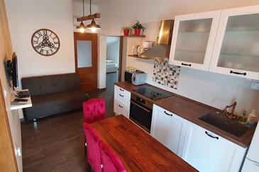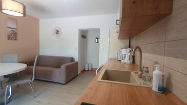 Ferienwohnung bietet Platz für 3 Gäste. Die Betten sind in Schlafzimmern, die es 1 gibt, und in Wohnzimmer, innerhalb einer Gesamtfläche von 32m2, angeordnet. Die Gäste haben eine eigene Terrasse zur Verfügung, auf der sie in warmen Sommernächten genießen können. Es ist erlaubt, Speisen auf dem Gemeinschafts-Grill vorzubereiten. In der Unterkunftseinheit besteht die Möglichkeit des Mitbringens von Haustieren gegen Aufpreis.