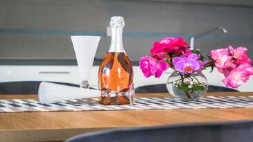 Ferienwohnung bietet Platz für 2 Gäste. Die Betten sind in Schlafzimmern, die es 1 gibt, innerhalb einer Gesamtfläche von 41m2, angeordnet. Die Gäste haben einen eigenen Balkon zur Verfügung, auf der sie in warmen Sommernächten genießen können. Das Apartment bietet Meerblick.