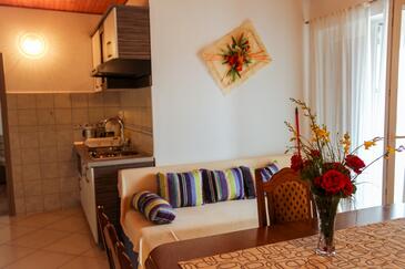 Ferienwohnung bietet Platz für 5 Gäste. Die Betten sind in Schlafzimmern, die es 2 gibt, innerhalb einer Gesamtfläche von 47m2, angeordnet. Die Gäste haben einen eigenen Balkon zur Verfügung, auf der sie in warmen Sommernächten genießen können. Das Apartment bietet Meerblick. Es ist erlaubt, Speisen auf dem Gemeinschafts-Grill vorzubereiten. Während ihres Aufenthalts können Gäste das gemeinsam zur Nutzung stehende Schwimmbad benutzen.