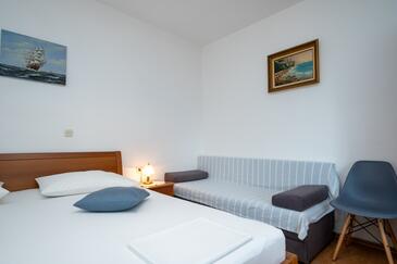 Ferienwohnung bietet Platz für 4 Gäste. Die Betten sind in Schlafzimmern, die es 2 gibt, innerhalb einer Gesamtfläche von 49m2, angeordnet. Die Gäste haben eine eigene Terrasse zur Verfügung, auf der sie in warmen Sommernächten genießen können. Das Apartment bietet Meerblick. Es ist erlaubt, Speisen auf dem Gemeinschafts-Grill vorzubereiten. In der Unterkunftseinheit besteht die Möglichkeit des Mitbringens von Haustieren gegen Aufpreis.
