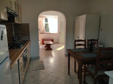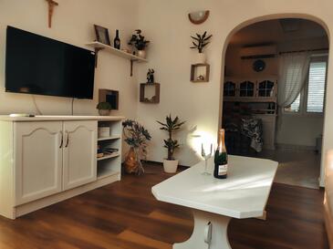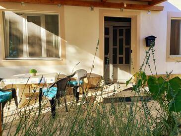 Haus bietet Platz für 4 Gäste. Die Betten sind in Schlafzimmern, die es 2 gibt, innerhalb einer Gesamtfläche von 95m2, angeordnet. Die Gäste haben eine eigene Terrasse zur Verfügung, auf der sie in warmen Sommernächten genießen können. In der Unterkunftseinheit besteht die Möglichkeit des Mitbringens von Haustieren gegen Aufpreis.