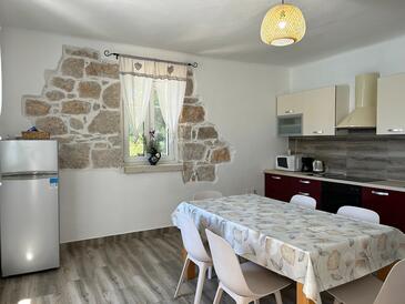Haus bietet Platz für 6 Gäste. Die Betten sind in Schlafzimmern, die es 2 gibt, und in Wohnzimmer, innerhalb einer Gesamtfläche von 105m2, angeordnet. Die Gäste haben eine eigene Terrasse zur Verfügung, auf der sie in warmen Sommernächten genießen können. Das Haus bietet Meerblick. Für vollen Genuss und Entspannung gibt es einen privaten Grill für Gäste dieser Unterkunft. Während ihres Aufenthalts können sich Gäste im privaten Schwimmbad entspannen. In der Unterkunftseinheit besteht die Möglichkeit des Mitbringens von Haustieren, und die Dienstleistung ist im Preis der Unterkunft enthalten.