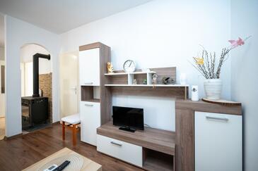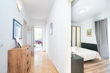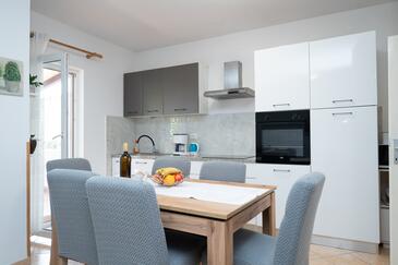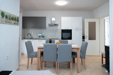 Ferienwohnung bietet Platz für 8 Gäste. Die Betten sind in Schlafzimmern, die es 3 gibt, und in Wohnzimmer, innerhalb einer Gesamtfläche von 100m2, angeordnet. Die Gäste haben eine eigene Terrasse zur Verfügung, auf der sie in warmen Sommernächten genießen können. Es ist erlaubt, Speisen auf dem Gemeinschafts-Grill vorzubereiten. In der Unterkunftseinheit besteht die Möglichkeit des Mitbringens von Haustieren gegen Aufpreis.