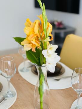 Ferienwohnung bietet Platz für 2 Gäste. Die Betten sind in Schlafzimmern, die es 1 gibt, innerhalb einer Gesamtfläche von 33m2, angeordnet. Die Gäste haben einen eigenen Balkon zur Verfügung, auf der sie in warmen Sommernächten genießen können. Es ist erlaubt, Speisen auf dem Gemeinschafts-Grill vorzubereiten.