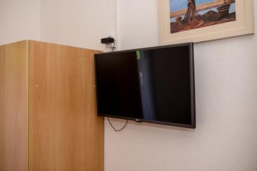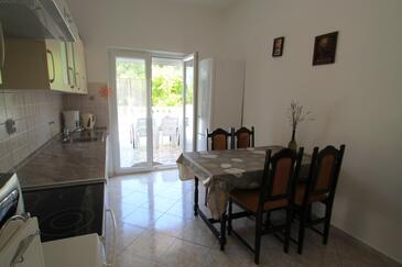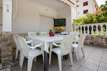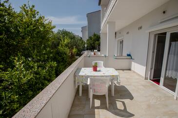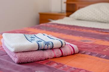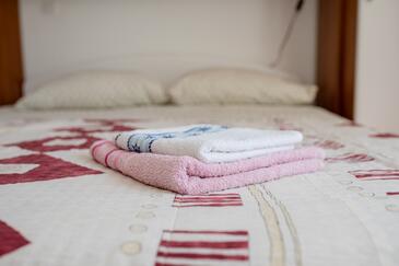 Ferienwohnung bietet Platz für 9 Gäste. Die Betten sind in Schlafzimmern, die es 3 gibt, innerhalb einer Gesamtfläche von 70m2, angeordnet. Die Gäste haben eine eigene Terrasse zur Verfügung, auf der sie in warmen Sommernächten genießen können. Es ist erlaubt, Speisen auf dem Gemeinschafts-Grill vorzubereiten. In der Unterkunftseinheit besteht die Möglichkeit des Mitbringens von Haustieren gegen Aufpreis.
