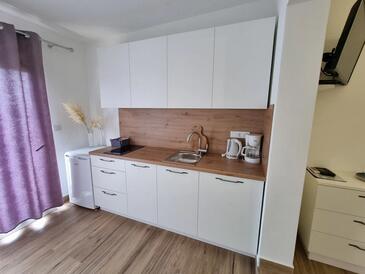 Ferienwohnung bietet Platz für 2 Gäste. Die Betten sind in Schlafzimmern, die es 1 gibt, innerhalb einer Gesamtfläche von 42m2, angeordnet. Die Gäste haben eine eigene Terrasse zur Verfügung, auf der sie in warmen Sommernächten genießen können. Es ist erlaubt, Speisen auf dem Gemeinschafts-Grill vorzubereiten.