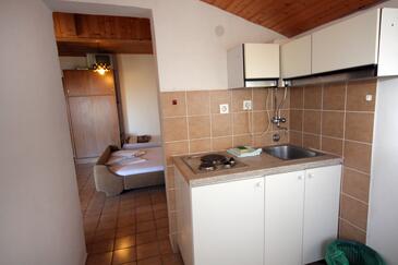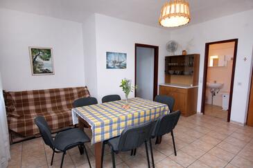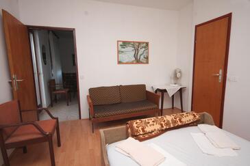 Ferienwohnung bietet Platz für 6 Gäste. Die Betten sind in Schlafzimmern, die es 2 gibt, und in Wohnzimmer, innerhalb einer Gesamtfläche von 54m2, angeordnet. Die Gäste haben eine eigene Terrasse zur Verfügung, auf der sie in warmen Sommernächten genießen können. Das Apartment bietet Meerblick. In der Unterkunftseinheit besteht die Möglichkeit des Mitbringens von Haustieren gegen Aufpreis.