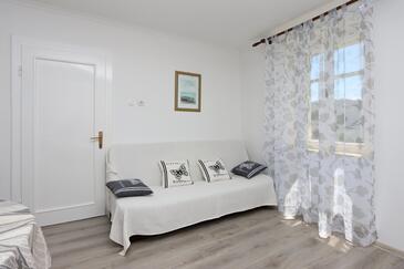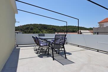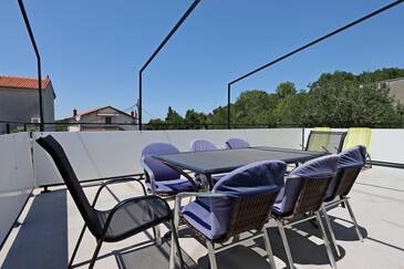 Ferienwohnung bietet Platz für 8 Gäste. Die Betten sind in Schlafzimmern, die es 3 gibt, und in Wohnzimmer, innerhalb einer Gesamtfläche von 81m2, angeordnet. Die Gäste haben eine eigene Terrasse zur Verfügung, auf der sie in warmen Sommernächten genießen können. Das Apartment bietet Meerblick. Es ist erlaubt, Speisen auf dem Gemeinschafts-Grill vorzubereiten. In der Unterkunftseinheit besteht die Möglichkeit des Mitbringens von Haustieren gegen Aufpreis.