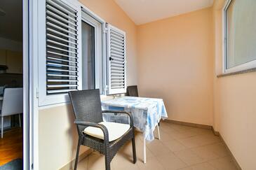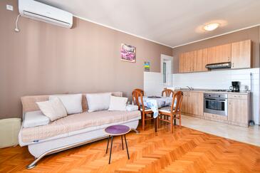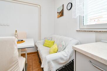 Ferienwohnung bietet Platz für 4 Gäste. Die Betten sind in Schlafzimmern, die es 2 gibt, innerhalb einer Gesamtfläche von 48m2, angeordnet. Die Gäste haben eine eigene Terrasse zur Verfügung, auf der sie in warmen Sommernächten genießen können. Das Apartment bietet Meerblick. Es ist erlaubt, Speisen auf dem Gemeinschafts-Grill vorzubereiten. In der Unterkunftseinheit besteht die Möglichkeit des Mitbringens von Haustieren gegen Aufpreis. Unterkunftseinheit hat Räume, die von dem Rest der Einheit abgetrennt werden.