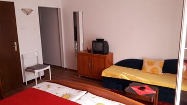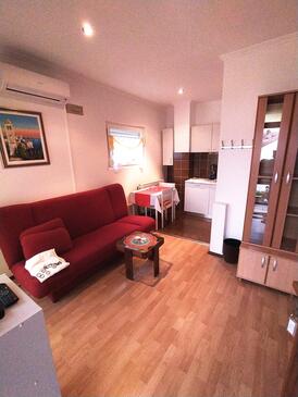 Ferienwohnung bietet Platz für 6 Gäste. Die Betten sind in Schlafzimmern, die es 3 gibt, innerhalb einer Gesamtfläche von 72m2, angeordnet. Die Gäste haben eine eigene Terrasse zur Verfügung, auf der sie in warmen Sommernächten genießen können. Das Apartment bietet Meerblick. Es ist erlaubt, Speisen auf dem Gemeinschafts-Grill vorzubereiten.