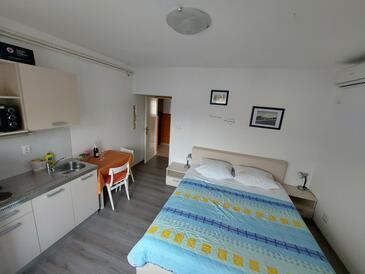Ferienwohnung bietet Platz für 4 Gäste. Die Betten sind in Schlafzimmern, die es 2 gibt, innerhalb einer Gesamtfläche von 67m2, angeordnet. Die Gäste haben einen eigenen Balkon zur Verfügung, auf der sie in warmen Sommernächten genießen können. Es ist erlaubt, Speisen auf dem Gemeinschafts-Grill vorzubereiten. In der Unterkunftseinheit besteht die Möglichkeit des Mitbringens von Haustieren gegen Aufpreis.