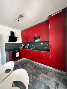 Haus bietet Platz für 6 Gäste. Die Betten sind in Schlafzimmern, die es 3 gibt, innerhalb einer Gesamtfläche von 130m2, angeordnet. Die Gäste haben eine eigene Terrasse zur Verfügung, auf der sie in warmen Sommernächten genießen können. Für vollen Genuss und Entspannung gibt es einen privaten Grill für Gäste dieser Unterkunft.