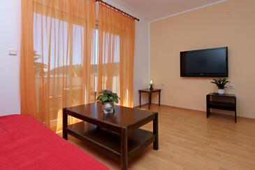 Ferienwohnung bietet Platz für 9 Gäste. Die Betten sind in Schlafzimmern, die es 3 gibt, innerhalb einer Gesamtfläche von 94m2, angeordnet. Die Gäste haben eine eigene Terrasse zur Verfügung, auf der sie in warmen Sommernächten genießen können. Das Apartment bietet Meerblick. Es ist erlaubt, Speisen auf dem Gemeinschafts-Grill vorzubereiten. In der Unterkunftseinheit besteht die Möglichkeit des Mitbringens von Haustieren gegen Aufpreis.