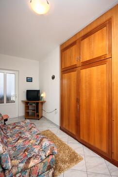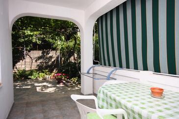 Ferienwohnung bietet Platz für 4 Gäste. Die Betten sind in Schlafzimmern, die es 2 gibt, innerhalb einer Gesamtfläche von 47m2, angeordnet. Die Gäste haben eine eigene Terrasse zur Verfügung, auf der sie in warmen Sommernächten genießen können. Das Apartment bietet Meerblick. Es ist erlaubt, Speisen auf dem Gemeinschafts-Grill vorzubereiten. In der Unterkunftseinheit besteht die Möglichkeit des Mitbringens von Haustieren gegen Aufpreis.