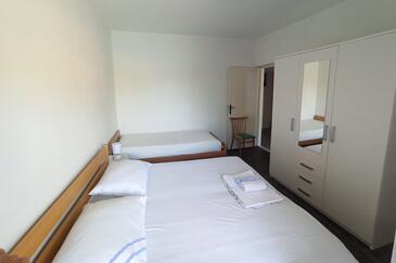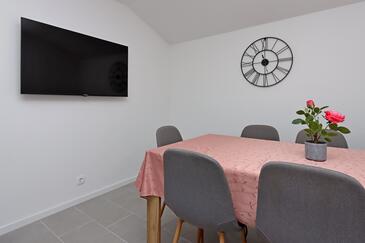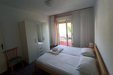 Ferienwohnung bietet Platz für 8 Gäste. Die Betten sind in Schlafzimmern, die es 4 gibt, innerhalb einer Gesamtfläche von 79m2, angeordnet. Die Gäste haben eine eigene Terrasse zur Verfügung, auf der sie in warmen Sommernächten genießen können. Das Apartment bietet Meerblick. Es ist erlaubt, Speisen auf dem Gemeinschafts-Grill vorzubereiten.