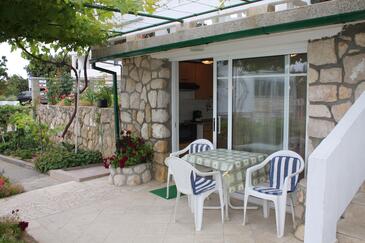 Ferienwohnung bietet Platz für 4 Gäste. Die Betten sind in Schlafzimmern, die es 2 gibt, innerhalb einer Gesamtfläche von 44m2, angeordnet. Die Gäste haben eine eigene Terrasse zur Verfügung, auf der sie in warmen Sommernächten genießen können. Das Apartment bietet Meerblick. Es ist erlaubt, Speisen auf dem Gemeinschafts-Grill vorzubereiten. In der Unterkunftseinheit besteht die Möglichkeit des Mitbringens von Haustieren gegen Aufpreis.