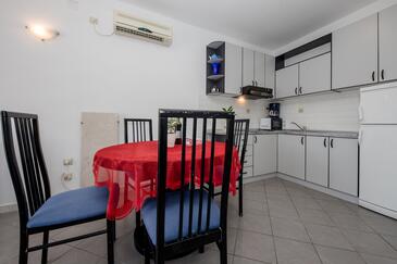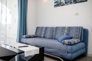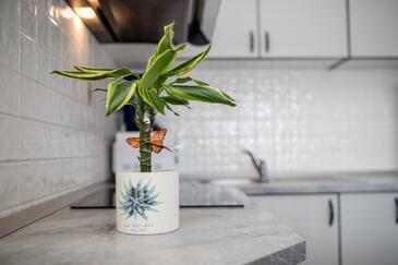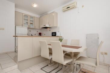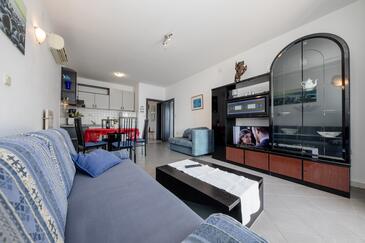 Ferienwohnung bietet Platz für 4 Gäste. Die Betten sind in Schlafzimmern, die es 2 gibt, innerhalb einer Gesamtfläche von 60m2, angeordnet. Die Gäste haben eine eigene Terrasse zur Verfügung, auf der sie in warmen Sommernächten genießen können. Das Apartment bietet Meerblick. Es ist erlaubt, Speisen auf dem Gemeinschafts-Grill vorzubereiten. In der Unterkunftseinheit besteht die Möglichkeit des Mitbringens von Haustieren gegen Aufpreis.
