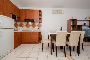 Ferienwohnung bietet Platz für 5 Gäste. Die Betten sind in Schlafzimmern, die es 2 gibt, und in Wohnzimmer, innerhalb einer Gesamtfläche von 60m2, angeordnet. Die Gäste haben eine eigene Terrasse zur Verfügung, auf der sie in warmen Sommernächten genießen können. Das Apartment bietet Meerblick. Es ist erlaubt, Speisen auf dem Gemeinschafts-Grill vorzubereiten. In der Unterkunftseinheit besteht die Möglichkeit des Mitbringens von Haustieren gegen Aufpreis.