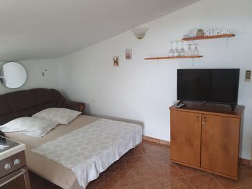 Ferienwohnung bietet Platz für 3 Gäste. Die Betten sind in Schlafzimmern, die es 1 gibt, und in Wohnzimmer, innerhalb einer Gesamtfläche von 25m2, angeordnet. Die Gäste haben einen eigenen Balkon zur Verfügung, auf der sie in warmen Sommernächten genießen können. Das Apartment bietet Meerblick. Es ist erlaubt, Speisen auf dem Gemeinschafts-Grill vorzubereiten.