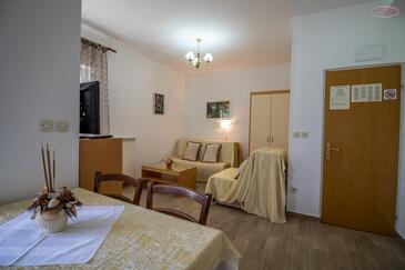 Ferienwohnung bietet Platz für 4 Gäste. Die Betten sind in Schlafzimmern, die es 1 gibt, und in Wohnzimmer, innerhalb einer Gesamtfläche von 40m2, angeordnet. Die Gäste haben einen eigenen Balkon zur Verfügung, auf der sie in warmen Sommernächten genießen können. Das Apartment bietet Meerblick. Es ist erlaubt, Speisen auf dem Gemeinschafts-Grill vorzubereiten. In der Unterkunftseinheit besteht die Möglichkeit des Mitbringens von Haustieren gegen Aufpreis.
