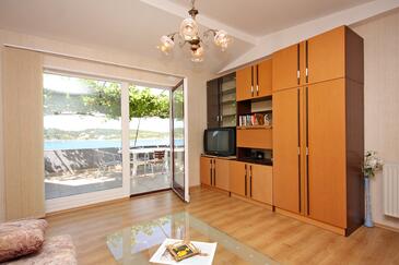 Ferienwohnung bietet Platz für 4 Gäste. Die Betten sind in Schlafzimmern, die es 1 gibt, und in Wohnzimmer, innerhalb einer Gesamtfläche von 52m2, angeordnet. Die Gäste haben eine eigene Terrasse zur Verfügung, auf der sie in warmen Sommernächten genießen können. Das Apartment bietet Meerblick. Es ist erlaubt, Speisen auf dem Gemeinschafts-Grill vorzubereiten. In der Unterkunftseinheit besteht die Möglichkeit des Mitbringens von Haustieren gegen Aufpreis.