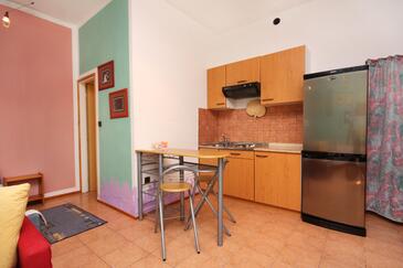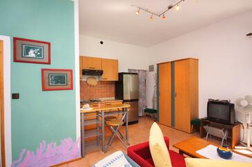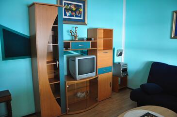 Ferienwohnung bietet Platz für 4 Gäste. Die Betten sind in Schlafzimmern, die es 1 gibt, und in Wohnzimmer, innerhalb einer Gesamtfläche von 38m2, angeordnet. Die Gäste haben eine eigene Terrasse zur Verfügung, auf der sie in warmen Sommernächten genießen können. Das Apartment bietet Meerblick. Es ist erlaubt, Speisen auf dem Gemeinschafts-Grill vorzubereiten. In der Unterkunftseinheit besteht die Möglichkeit des Mitbringens von Haustieren gegen Aufpreis. Durch die Terrasse der gebuchten Unterkunftseinheit gehen auch andere Gäste oder Vermieter.