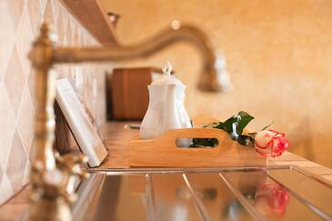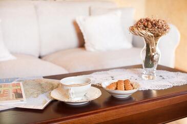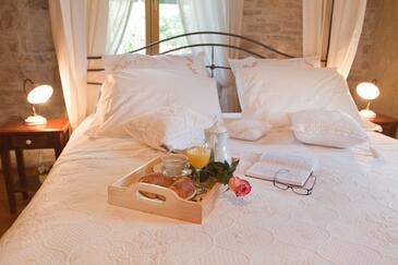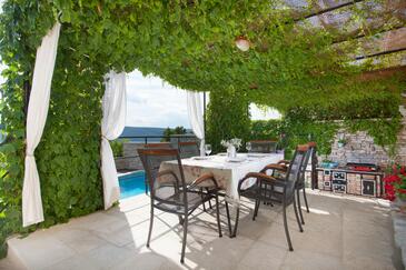 Haus bietet Platz für 6 Gäste. Die Betten sind in Schlafzimmern, die es 3 gibt, innerhalb einer Gesamtfläche von 112m2, angeordnet. Die Gäste haben eine eigene Terrasse zur Verfügung, auf der sie in warmen Sommernächten genießen können. Das Haus bietet Meerblick. Für vollen Genuss und Entspannung gibt es einen privaten Grill für Gäste dieser Unterkunft. Während ihres Aufenthalts können sich Gäste im privaten Schwimmbad entspannen. In der Unterkunftseinheit besteht die Möglichkeit des Mitbringens von Haustieren gegen Aufpreis. In der gebuchten Unterkunftseinheit zahlt man am Ort ein Depositum ( der Preis ist an der Internetseite angeführt ).