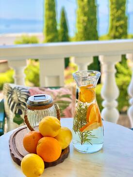 Ferienwohnung bietet Platz für 4 Gäste. Die Betten sind in Schlafzimmern, die es 2 gibt, innerhalb einer Gesamtfläche von 49m2, angeordnet. Die Gäste haben eine eigene Terrasse zur Verfügung, auf der sie in warmen Sommernächten genießen können. Das Apartment bietet Meerblick.