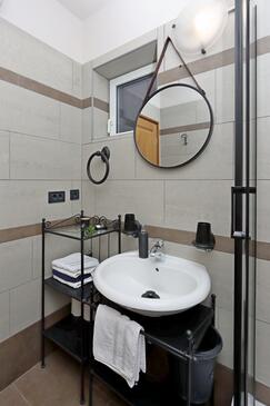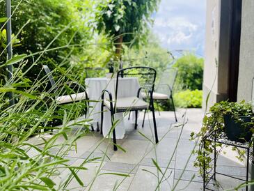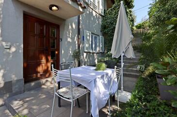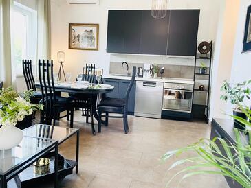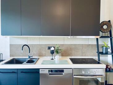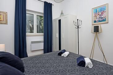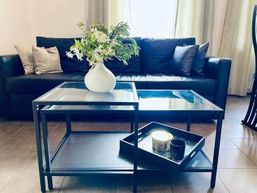Ferienwohnung bietet Platz für 4 Gäste. Die Betten sind in Schlafzimmern, die es 2 gibt, innerhalb einer Gesamtfläche von 46m2, angeordnet. Die Gäste haben eine eigene Terrasse zur Verfügung, auf der sie in warmen Sommernächten genießen können. Das Apartment bietet Meerblick. Es ist erlaubt, Speisen auf dem Gemeinschafts-Grill vorzubereiten.