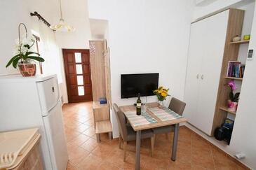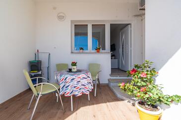 Ferienwohnung bietet Platz für 2 Gäste. Die Betten sind in Schlafzimmern, die es 1 gibt, innerhalb einer Gesamtfläche von 39m2, angeordnet. Die Gäste haben eine eigene Terrasse zur Verfügung, auf der sie in warmen Sommernächten genießen können.