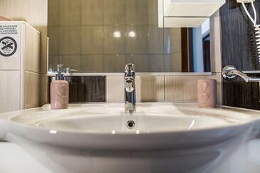 Haus bietet Platz für 16 Gäste. Die Betten sind in Schlafzimmern, die es 4 gibt, und in Wohnzimmer, innerhalb einer Gesamtfläche von 166m2, angeordnet. Die Gäste haben einen eigenen Balkon zur Verfügung, auf der sie in warmen Sommernächten genießen können. Das Haus bietet Meerblick. Für vollen Genuss und Entspannung gibt es einen privaten Grill für Gäste dieser Unterkunft. Während ihres Aufenthalts können sich Gäste im privaten Schwimmbad entspannen. In der Unterkunftseinheit besteht die Möglichkeit des Mitbringens von Haustieren, und die Dienstleistung ist im Preis der Unterkunft enthalten. Räume der gebuchten Unterkunftseinheit werden nicht in eine Ganze verbunden.